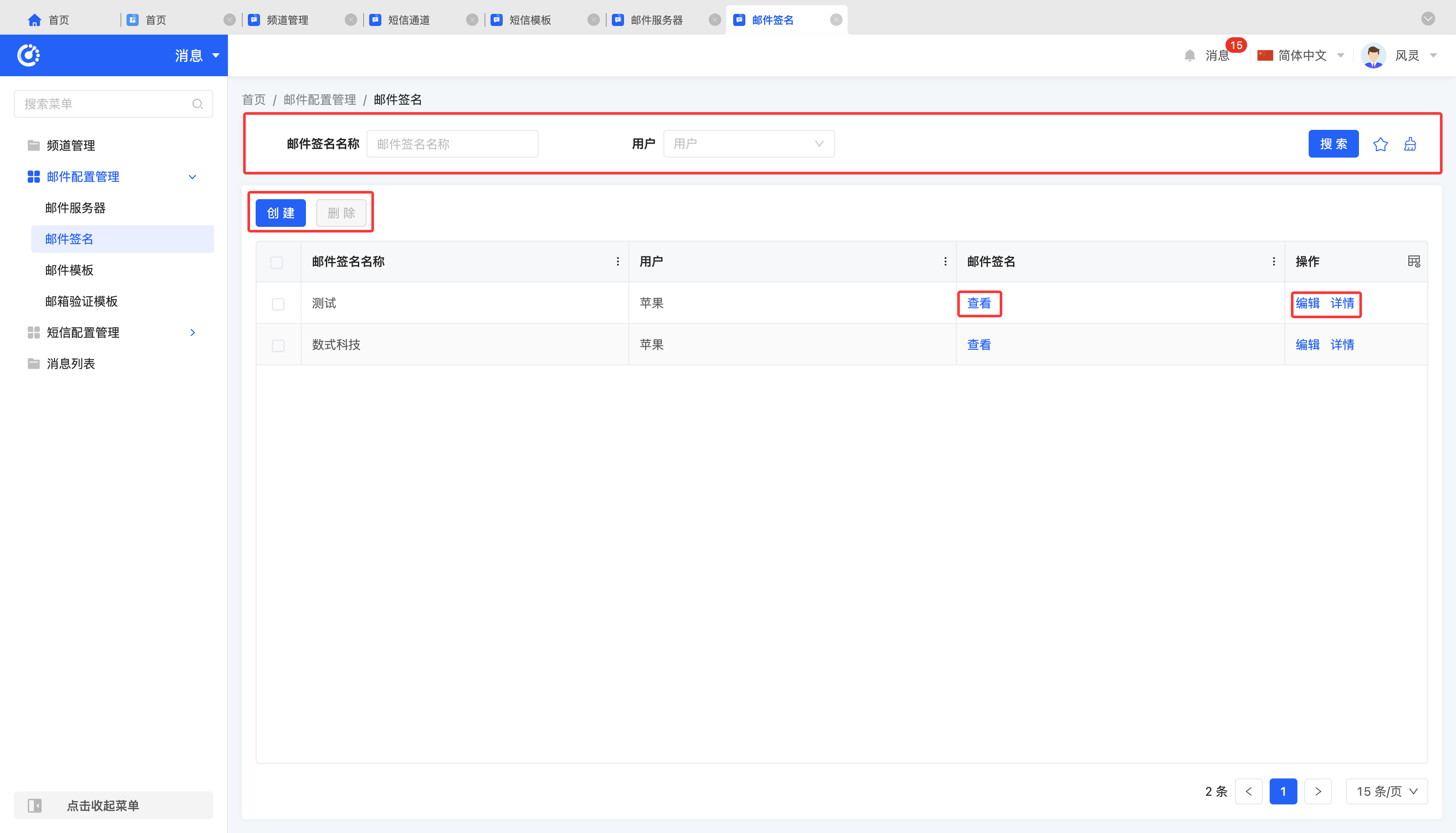 - 详情:点击「详情」,可查看所选邮件签名的详细信息,包括配置参数、状态等。