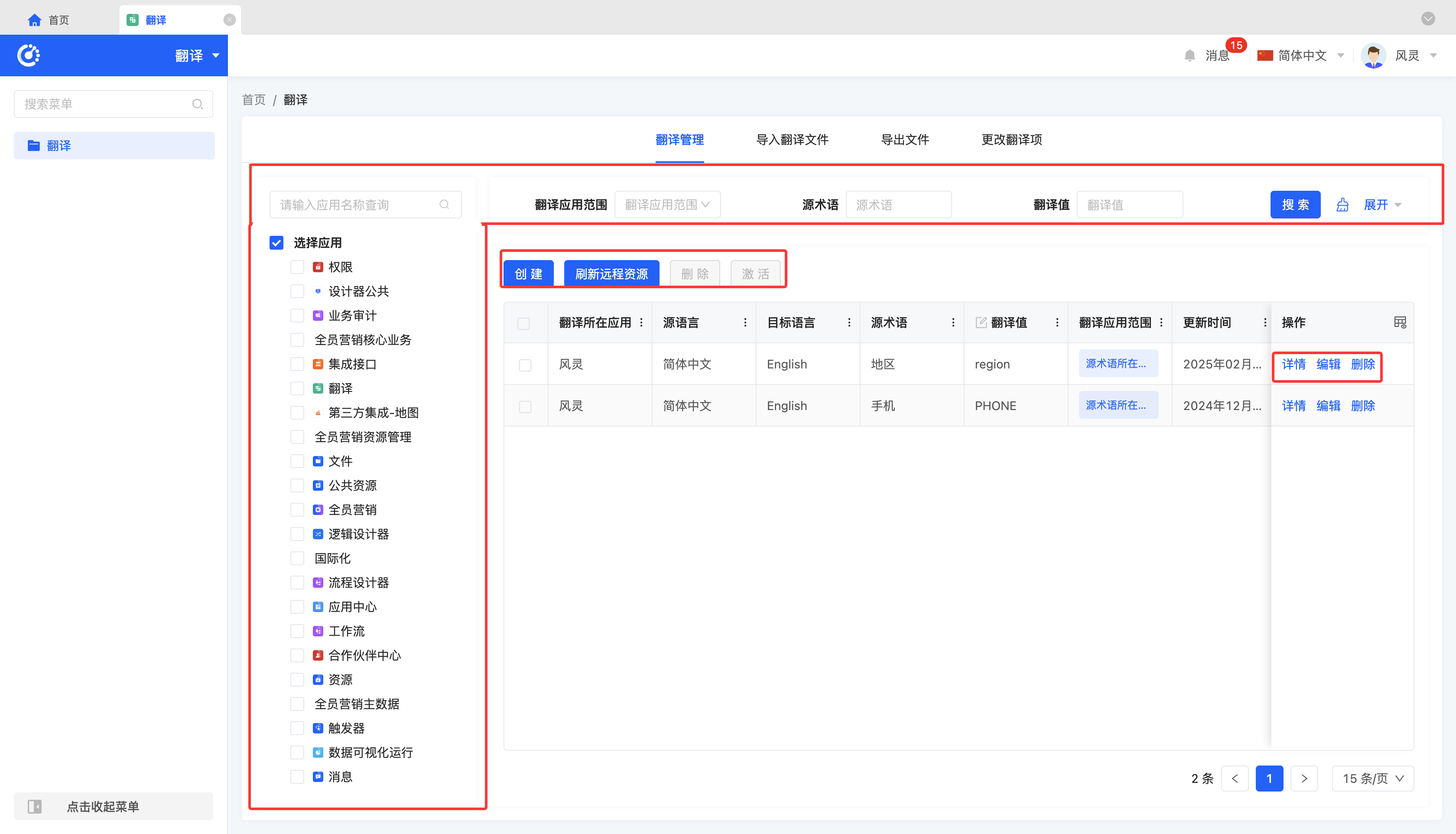 - 激活:当某一翻译项状态为“未激活”时,可选中该规则,点击「激活」,以快速启用该规则